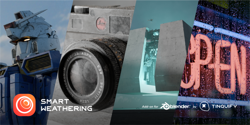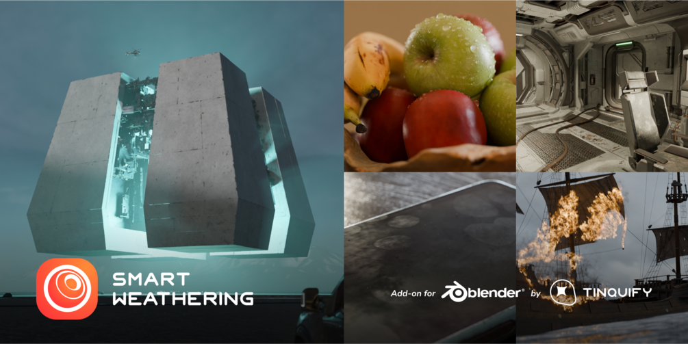 “Smart Weathering” will let you add weathering effects to the shaders you have already done in your scene in order to add those imperfections that make a render more realistic, and add extra level of detail with Geometry nodes effects!